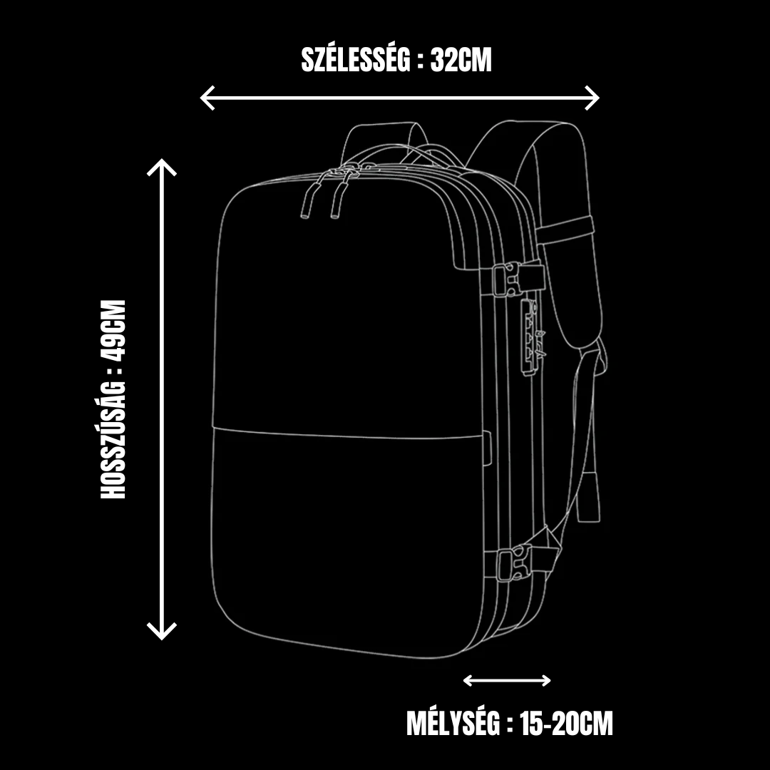 A VACPAC hátizsákok 49 x 32x 15-20-as méreteket vesznek fel, amikor teljesen ki vannak használva.